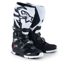 The toe box has a hard-coated protector, and there are replaceable buckles including aluminum frame, a steel shank in the foot shell, a TPU shin plate with dual-closure, and medial side protection with a honeycomb insert for grip and heat guard. Fit includes a wide entry aperture to accomodate knee braces that extend into the shin region. We've included the Tech 7 Enduro boots as our protection option because let's face it, if you're serious about riding ADV bikes off-road, then you should reach for something that will be able to withstand dealing with heavier ADV machines.