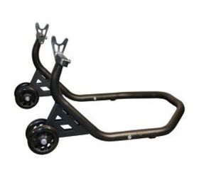 All motorcycles once upon a time came with centerstands, and sat upon the best of them, your bike would rest on its back tire when you removed the front wheel, and vice versa. That doesn’t happen much anymore except with select BMW Boxers. Now, you pretty much need a rear stand to remove your back wheel or just to make lubing/adjusting the chain easier. And unless you’ve got a nice system of ropes and pulleys arranged in the garage rafters, you’ll be needing a front stand to get the front wheel off also. The Pit Posse Universal Rear Stand pictured is a good example of the breed, but there are many other options.