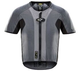 The Alpinestars Tech-Air 5 system is a wearable electronic airbag vest designed to offer comprehensive upper-body protection for motorcyclists. The vest incorporates six integrated sensors — three gyroscopes and three accelerometers — and an AI-enhanced crash detection algorithm that deploys the airbag in between 20 and 40 milliseconds depending on the vest size. It protects the shoulders, chest, ribs, and full back. The impact absorption it provides can reduce force by up to 95 percent when compared to a passive back protector, equivalent to wearing eighteen standard CE Level 1 back protectors. The vest is self-contained and battery powered, offering up to about 30 hours of riding time per charge, and is recharged via a magnetic USB charger. A front LED status display shows operational state and battery level. The vest is built to be worn beneath textile or compatible leather jackets, provided there is sufficient clearance around the chest (about 4 cm) for proper airbag deployment. Fitment spans sizes XS through 4XL.