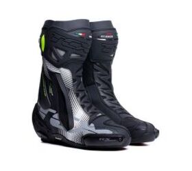 The TCX RT-Race Pro Air boots are purpose-built track boots that merge race-grade protection with heavy perforation for airflow. The perforated microfiber upper and Air Tech mesh lining keep feet cool under heat, while the PU shin plate, heel counter, and replaceable magnesium toe and heel sliders offer top-tier protection. The DFC Double Flex Control ankle brace helps prevent dangerous hyper-extension, balancing mobility and safety. A bi-compound “Burnout” Michelin-inspired sole delivers strong grip and precise peg feel. Fit customization is dialed in via aluminum buckle, side zipper, and the Fasten Fit Control lacing system. Rugged, ventilated, and engineered for performance — though walking comfort suffers, on-bike control is dialed.